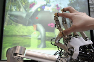Sure, a computer mouse or video game joystick allows you to manipulate items in a computer environment, but the realm of physical touch falls to the field of computer haptics. As the photo on this page illustrates, haptic technology generally takes the form of a glove that allows the user to not only control but actually feel virtual items.